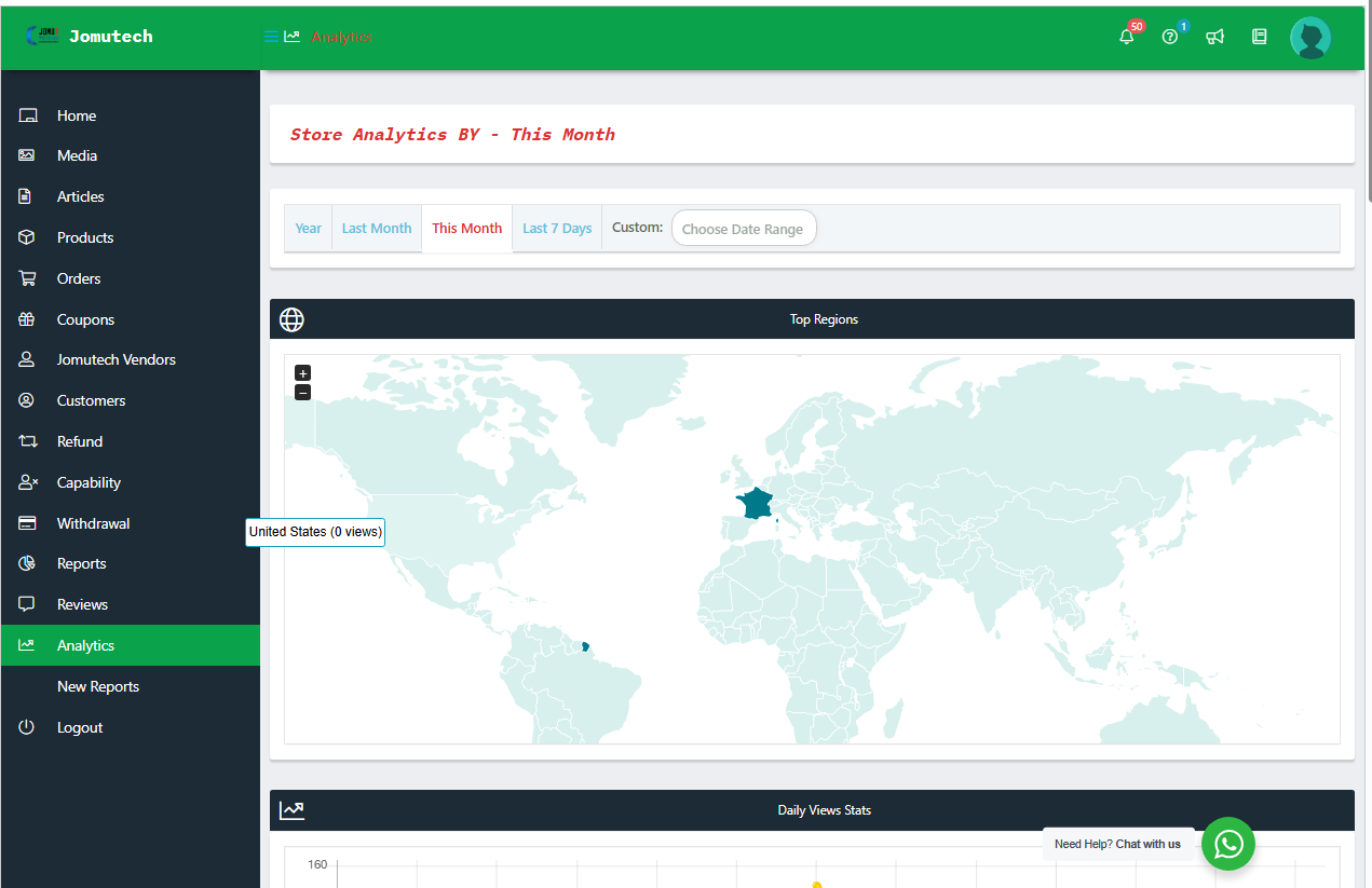 ✅ Reports & Analytics – Vendors get real-time insights into sales, revenue, and performance.